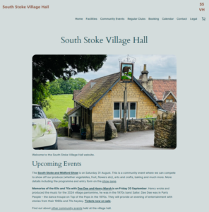 Village hall website – with availability calendar and shop taking payments for event tickets