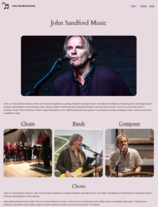 Musician website – links to various other sites, embedded video, smooth scrolling links